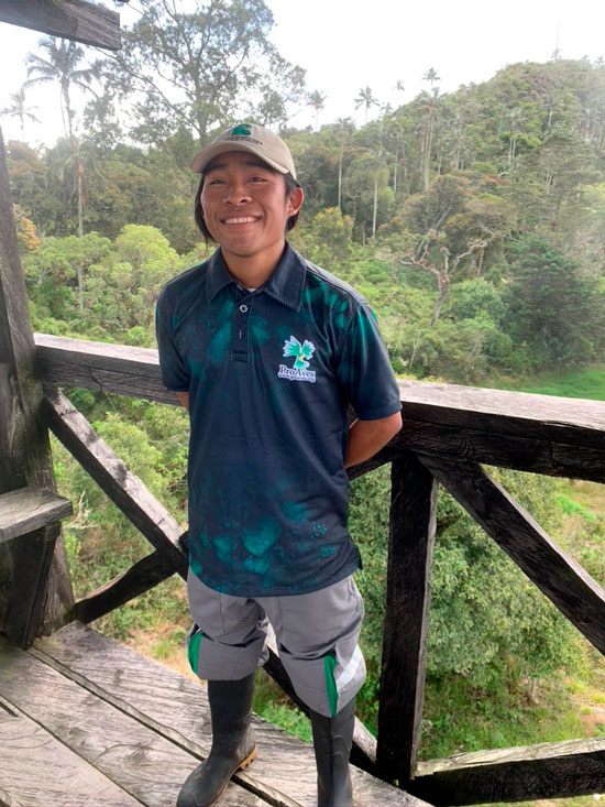 Delio solo lleva cuatro meses como guardabosques, pero desde hace un año trabajaba indirectamente con la Fundación organizando los jardines y los caminos de la zona baja de la Reserva. “Antes de ser guardabosques estudiaba en Vista Nieve, una vereda cercana a la Reserva”.