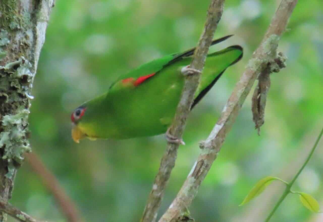 “Fue un avistamiento inesperado estaba en la casa a punto de salir y en frente usualmente hay mucho movimiento de aves, allí llegaron unos tres periquitos y al verlos de una supe que no los había visto antes, le alcancé a sacar unas fotos regulares, y al momento se fueron, fue un avistamiento de menos de 30-40 segundos”.