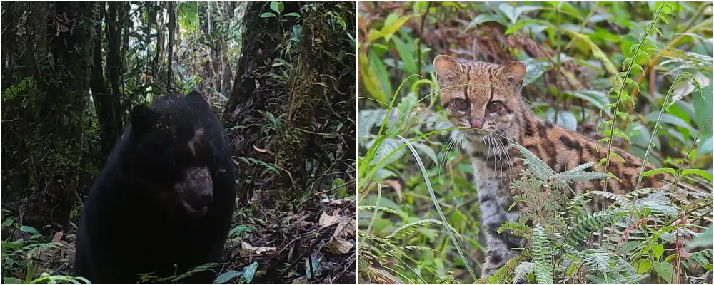 In terms of mammals, we have recorded 32 species, including nine of high conservation interest. These include the Spectacled Bear (Tremarctos ornatus) and the Oncilla (Leopardus tigrinus), both categorized as Vulnerable (VU).