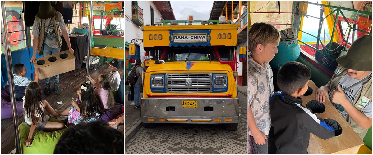 ProAves’ environmental education bus, the RanaChiva, traveled across the country from Santander to Antioquia to join this special event. Children and their families entered the bus and learned to protect three species threatened by extinction: Lynch’s Colombian tree frog (Hyloscirtus lynchi), the bird Colombian Mountain grackle (Macroagelaius subalaris), and the Colombian oak (Quercus humboldtii). Children, teens, and adults alike loved the immersive bus experience and hopped on board ProAves’ mission to bring conservation education to all parts of Colombia.