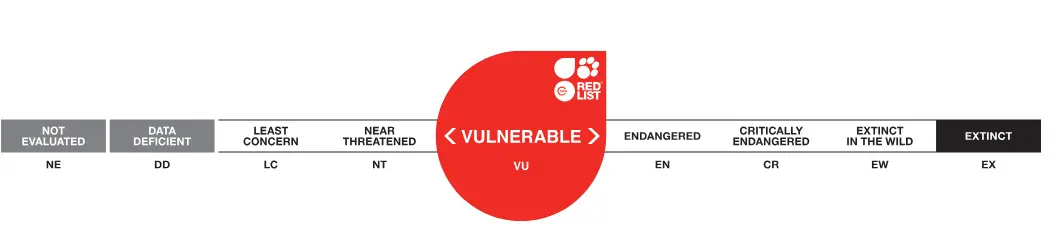 According to the Red List of the International Union for Conservation of Nature (IUCN), this species is considered to be in the Vulnerable (VU) category, where its main threats have been due to the loss and degradation of forests, poaching and collision with power lines.