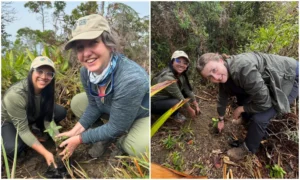 Uno de los momentos más simbólicos y significativos de la visita fue la siembra de plántulas nativas en zonas de restauración de la Reserva, acción que representa nuestro compromiso compartido por regenerar la vida de los bosques. Posteriormente, recorrimos el sendero hacia La Cumbre, una caminata que nos permitió disfrutar del avistamiento de la vida silvestre, escuchar a los monos aulladores (Alouatta seniculus) y explorar la biodiversidad que habita los bosques de niebla de la Sierra Nevada de Santa Marta.
