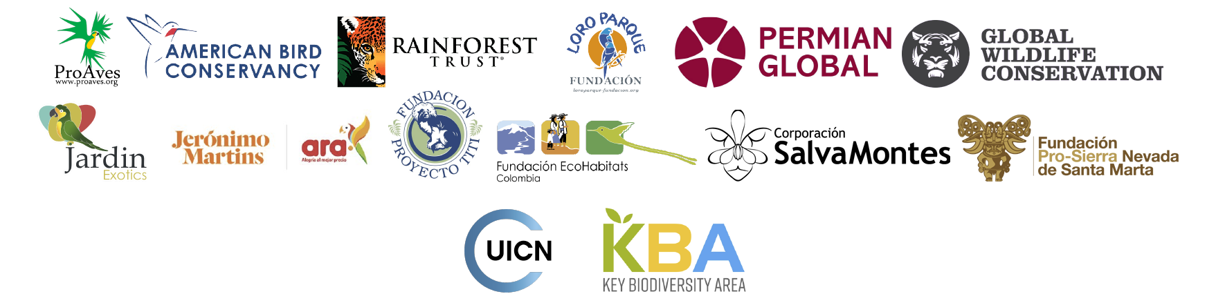 La Fundación ProAves de Colombia, en el marco de su membresía UICN, su articulación con American Bird Conservancy y otros socios UICN en Colombia, Fundación Ecohabitats, Fundación Salvamontes, Fundación Proyecto Tití y Fundación ProSierra, se asocian para continuar promoviendo la apropiación, participación e implementación de KBA y AZE en Colombia.