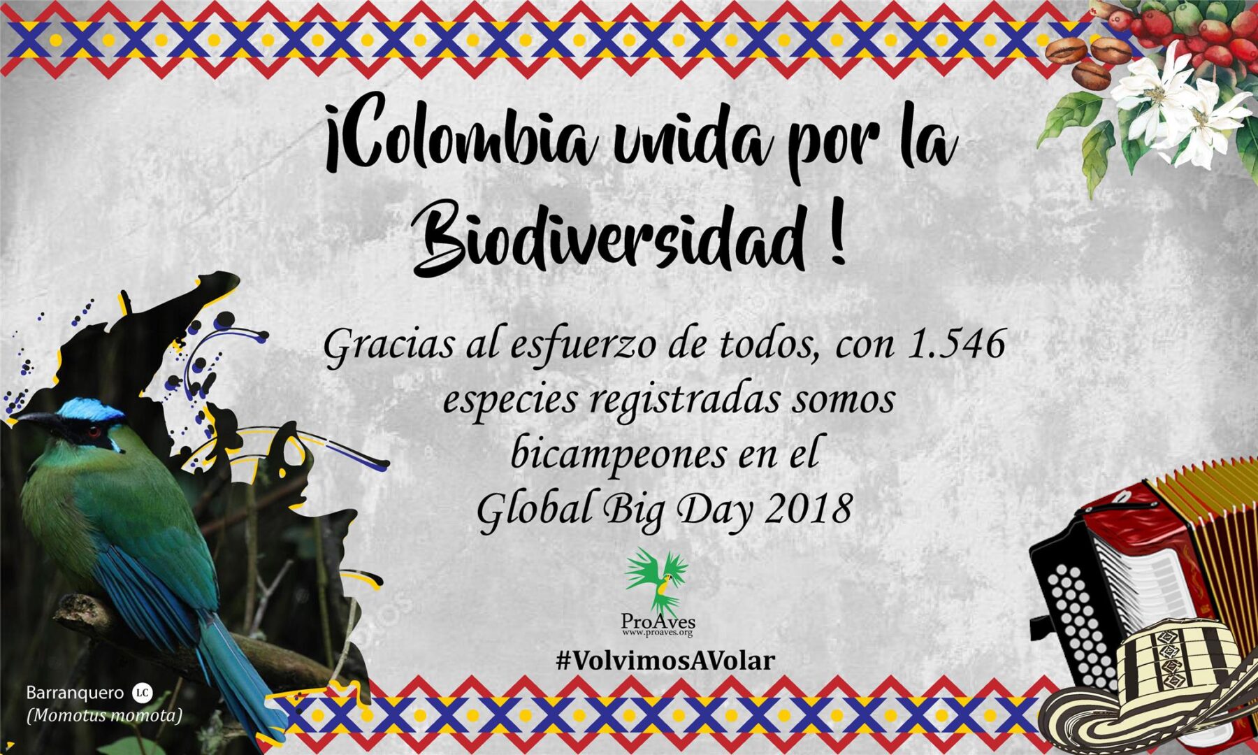 GBDColombia #Emoción#EsteAñoTambién #No1Aves#GBDColombia #Aves #Birds#Colombia1enAves #GBD2018#BirdYourWorld #YearOfTheBird#BirdsColombia #BirdsoftheWorld#WorldBirds #PájarosDeColombia#CadaAveCuenta #BirdsColombia #ProAves#ProAves18Años #eBird #eBirdColombia#Campeones #1#GraciasColombia