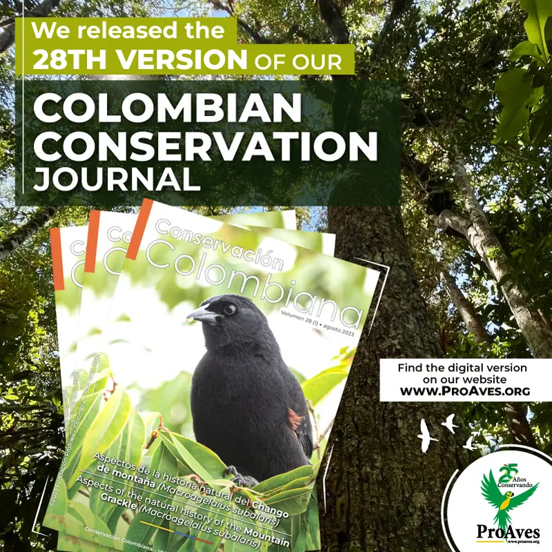 One of ProAves Foundation’s strategic lines contemplates research as a transversal axis to contribute to the conservation of the fauna and flora of our country. We proudly announce that the 28th issue of the journal Conservación Colombiana is now online and available for review in digital format.