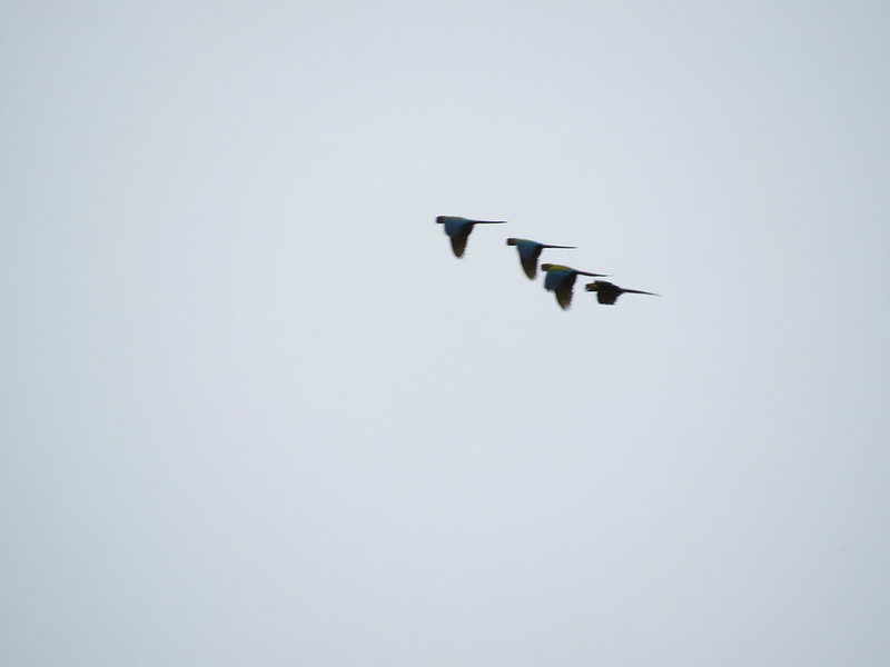 En estos predios de conservación, ProAves viene desarrollando un trabajo de monitoreo de la especie y sensibilización con las comunidades en contra de la captura de las Guacamayas para su comercio ilegal. Durante los monitoreos continuos realizados en el último año por los guardabosques de la Fundación, solo se habían contado grupos pequeños de la especie, con un promedio de cuatro individuos y, el más grande, con 8 individuos. Esta semana tuvimos la gran oportunidad de observar un grupo de trece individuos alimentándose en un gran árbol de “Choibá” (Dipteryx oleifera), lo que nos permitió recolectar aproximadamente 200 semillas para la reproducción y reforestación de esta especie clave para la Ara ambiguus.