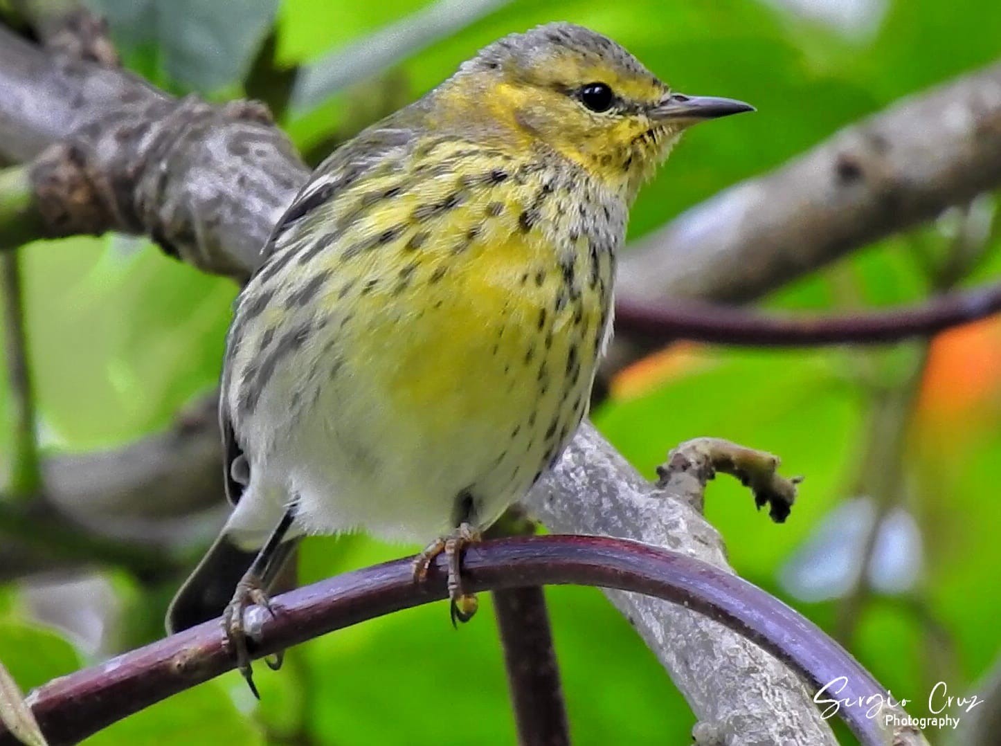 “Cerca de las 04:00 p.m. en mi recorrido de monitoreo de aves en la Reserva Loro Coroniazul, vi en un árbol actividad de un ave que estaba volando sobre las ramas, comencé a observar bien y noté que no podía identificarla porque era una especie muy diferente a las que veo habitualmente en la Reserva, por lo cual decidí tomarle fotos para luego investigar y determinar de qué especie se trataba, más tarde logré confirmar que era una Setophaga tigrina, hembra”.