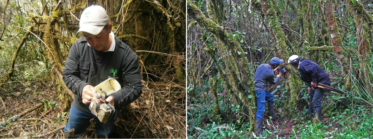 La Fundación ProAves implementó el uso de las cámaras trampa para registrar patrones de comportamiento y actividad de las especies, forrajeo, áreas del forrajeo, sistemas sociales y partición de nicho; comportamiento alfa, uso de hábitat y corredores.