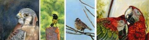 American Kestrel (Falco sparverius), Black Backed Grosbeak) (Pheucticus aureoventris), Rufous-collared Sparrow (Zonotrichia capensis) and Green wing Macaw (Ara chloroptera).