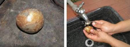 Cuando se ha hecho la prueba se separa la morula de la base de la palma, después de tener varias recolectadas se procede a extraer cada una de las semillas de este caparazón, es necesario hacerlo con martillo por la dureza de la misma.