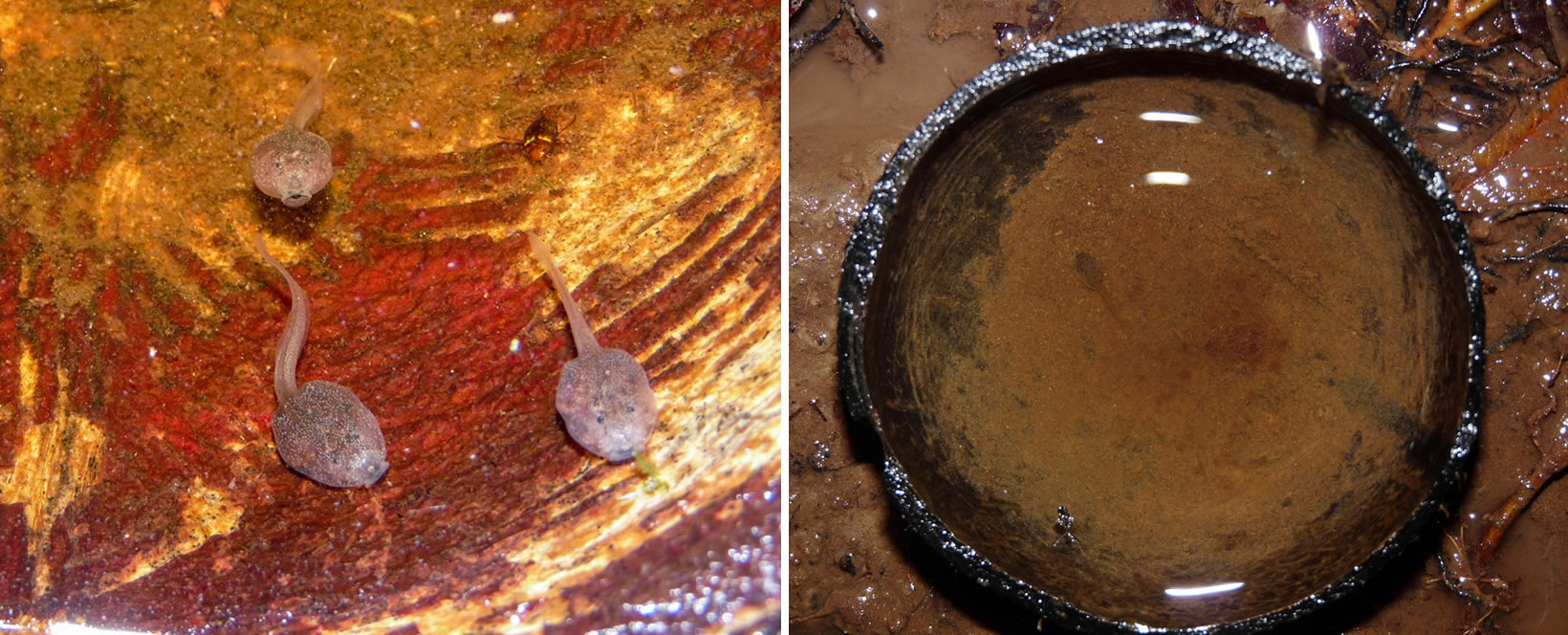 Como resultado de las actividades realizadas por Juan Sebastián Forero en el marco de su pasantia, desde octubre de 2013 a enero de 2014, se instalaron 84 mitades de coco en las zonas de la reserva donde es común observar a individuos de la rana con el objetivo de aumentar los sitios disponibles para el desarrollo de los renacuajos de esta especie. A partir del mes de noviembre de 2013 se comenzaron a registrar renacuajos en los cocos instalados y la posterior revisión detallada de estos, permitió saber que pertenecían a P. terribilis.