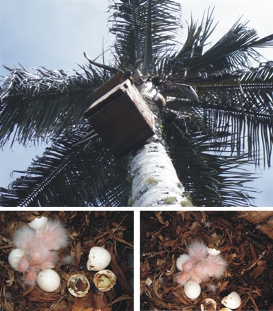 La cavidad se encuentra actualmente ocupada por 4 individuos que cuidan del nido, dos crías eclosionadas hace cuatro días y dos huevos. Para los investigadores ha resultado sorprendente el uso eficaz de los nidos artificiales más aun teniendo en cuenta que la temporada reproductiva para esta especie se daba por terminada hacia Abril – Mayo época en la cual hubo registros de grupos de loros con juveniles en zonas de forrajeo.