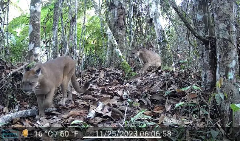 Por medio de las cámaras trampa ubicadas en nuestras Reserva Naturales como estrategia para conocer la biodiversidad, sus patrones de comportamiento y estimaciones poblacionales, el pasado 25 de noviembre quedó registrado en video el paso de dos pumas (pumas concolor) por el sendero del oso en nuestra Reserva ProAves Reinita Cielo Azul en el municipio de San Vicente de Chucurí, Santander, la observación de estos pumas se hizo a una altura de 1.750 m.s.n.m sobre las 6:00 de la mañana.