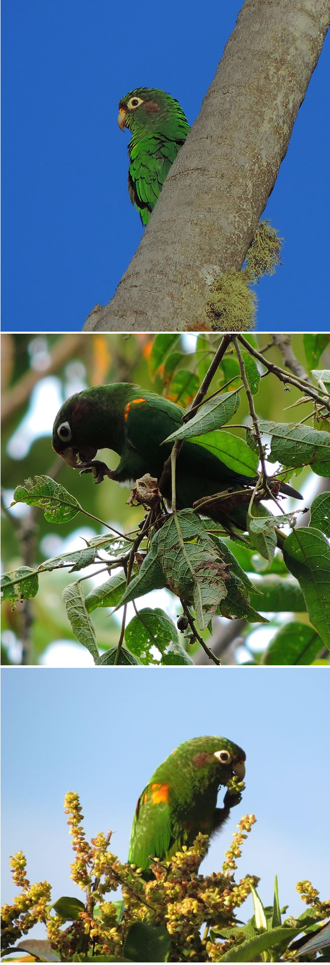 Otro observación importante fue el registro, al interior del bosque, de dos nidos naturales en Palmas de Ramo (Ceroxylon ceriferum); la vegetación aledaña a los nidos exhibe una  composición heterogénea, con presencia de parches de bosque primario  y algunas zonas abiertas de vegetación secundaria con presencia de la misma palma, esta palma predomina en todos los sitios de presencia del periquito.