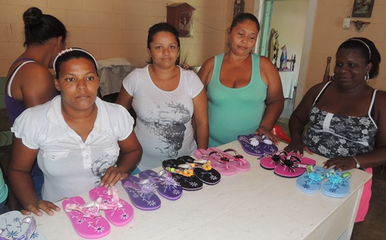 Y el segundo taller, realizado en la vereda Charcón se capacitó a 10 mujeres en la decoración de sandalias, el taller tuvo una duración de 6 horas donde cada una de las participantes recibió el material necesario para elaborar 2 pares de sandalias.