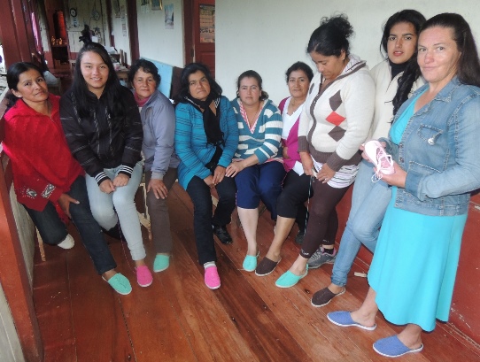 Durante el primer taller, realizado en el mes de abril en el municipio de Roncesvalles Tolima, zona de amortiguación de la Reserva Loro Coroniazul; se enseñó a fabricar zapatos en crochet y contó con la participación de 10 mujeres campesinas, en su mayoría sin trabajo remunerado o dedicadas a los oficios de sus hogares, viven en las fincas aledañas a lareserva, su principal actividad es el ordeño y la fabricación de queso, pero ninguna recibe un pago su trabajo.