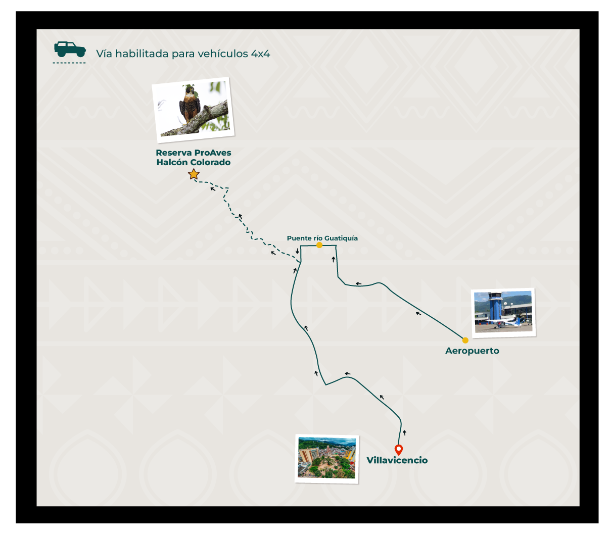 La Reserva ProAves se encuentra ubicada en el piedemonte de los llanos orientales colombianos, al noroccidente de la ciudad de Villavicencio, capital del departamento del Meta (Colombia). Está localizada entre los 800 y 1.100 m.s.n.m.